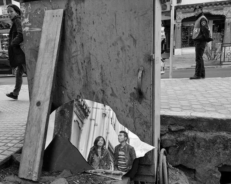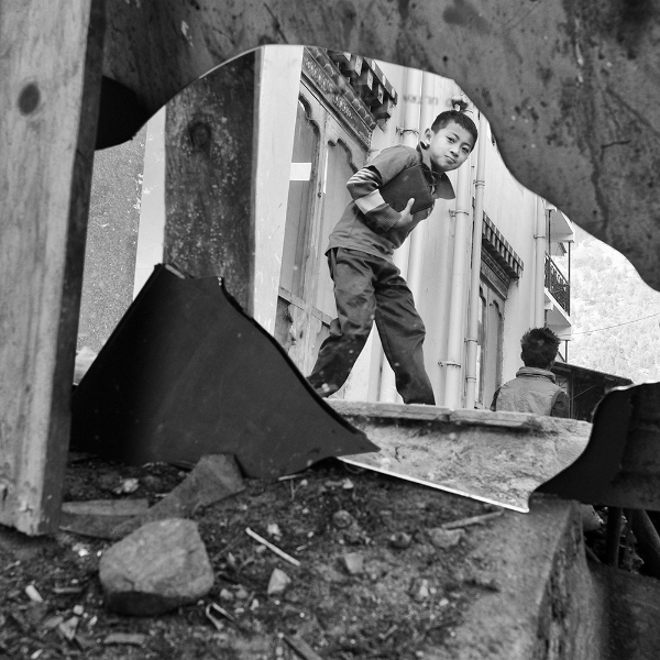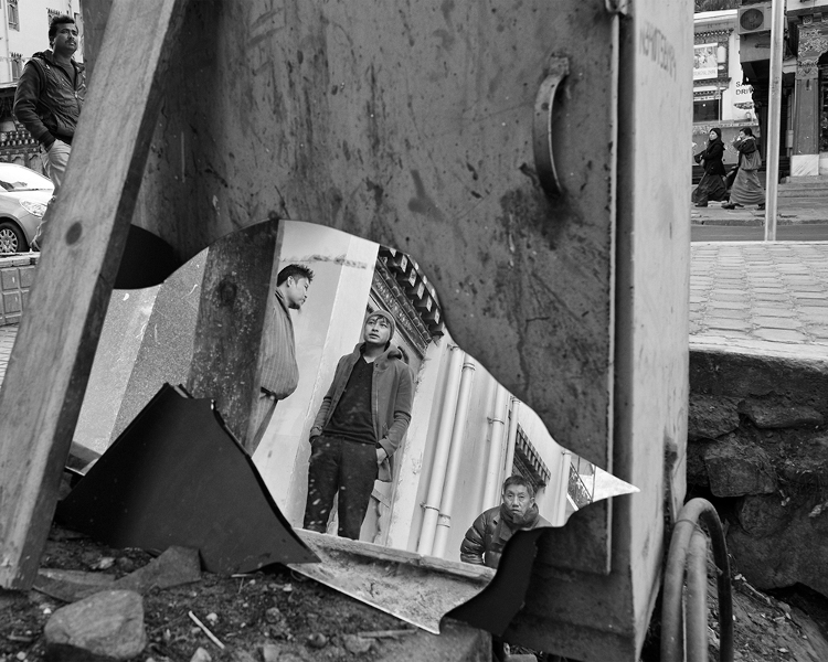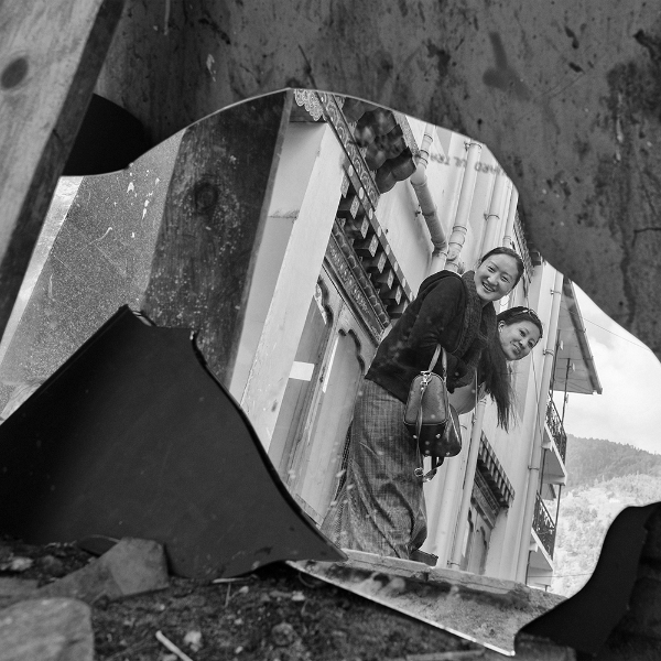 A broken mirror on a footpath in Thimphu, Bhutan presented an
