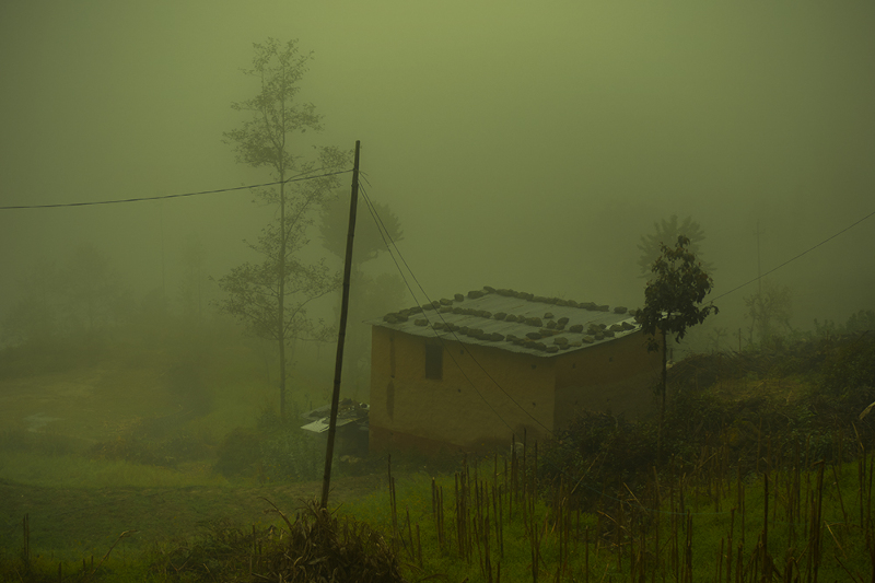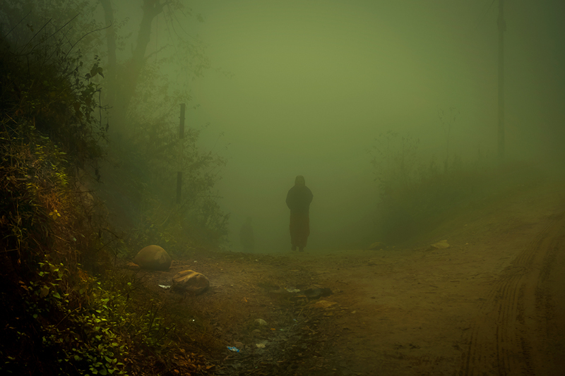 Within seconds the dense Himalayan fog in Nepal appears in spring and transcends the