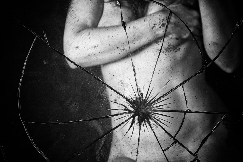 I 'm working often with mirror, I choose three with broken mirror. My work of self-portrait is a way of life. This series is calling 'seven years unhappiness'.
