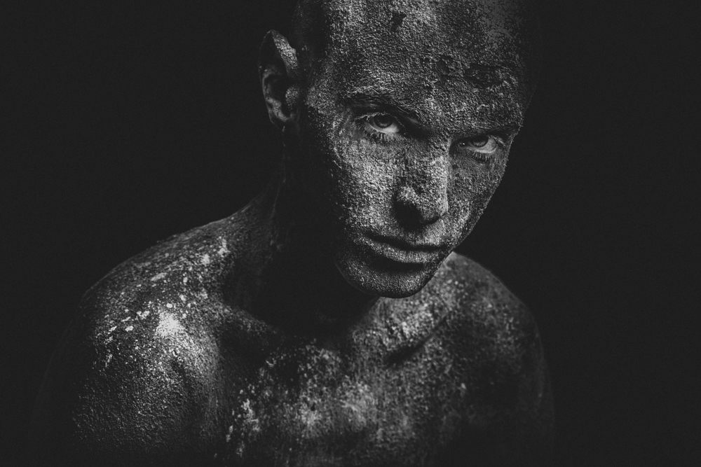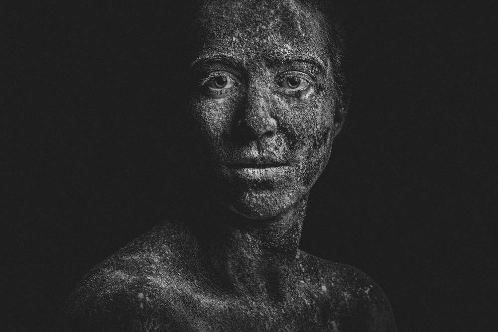 Alive: On these portraits, the emotion can still be seen, it keeps people living, yet can break the rock. It is a hope; a timid enlightenment for the spirit within the shadow.