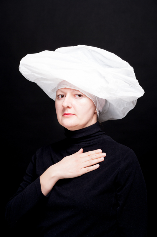 I have taken a series of my friend portraits inspired by her Reanaissance beauty, Reanaissance and flemish paintings and my passion for recykling and minimalism.