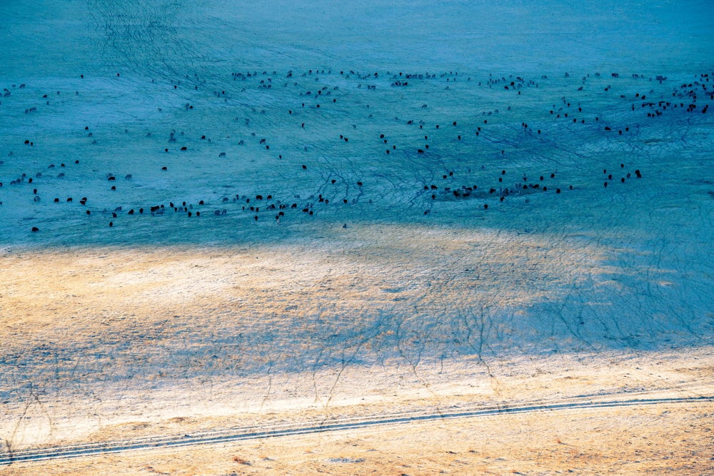 In the winter of little gobi in mongolia, herds of sheep waiting in the