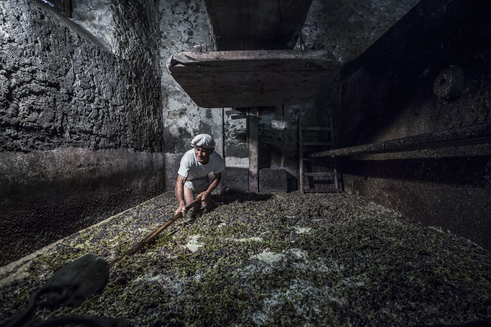 Traditional grape harvest at the foot of the Etna volcano. In this