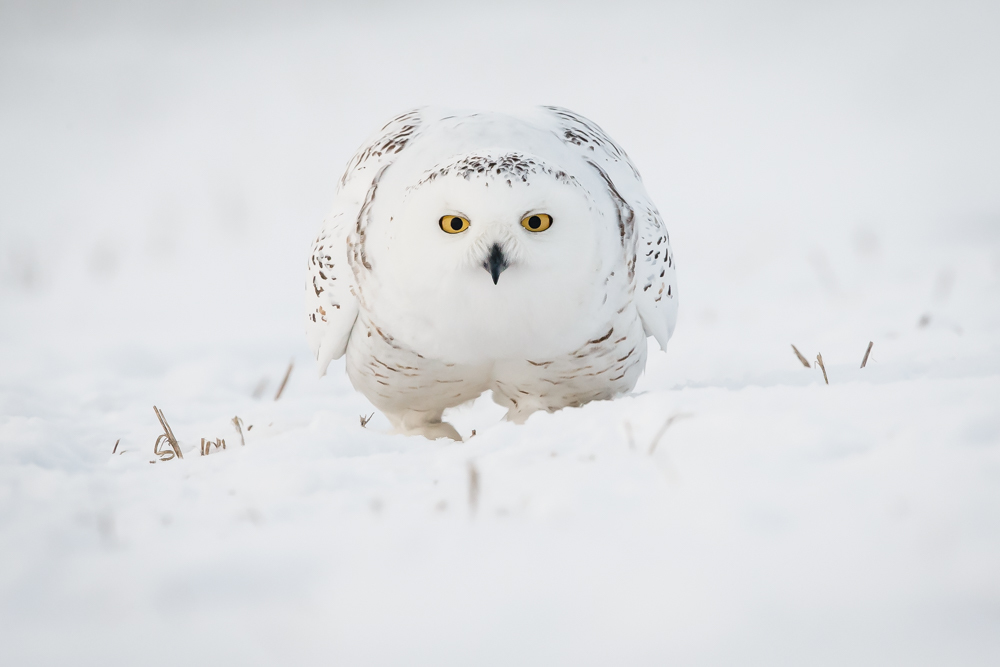 A direct eye connection with a snowy owl.