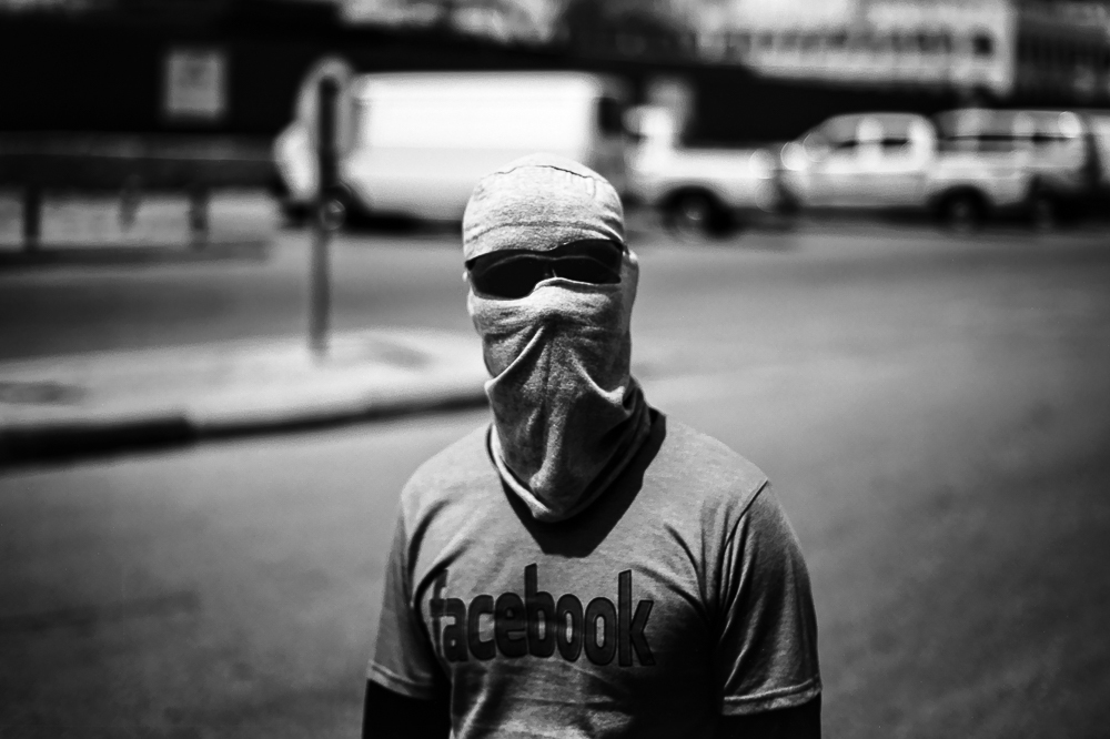 This anonymity of his covered face is contradicting the facebook