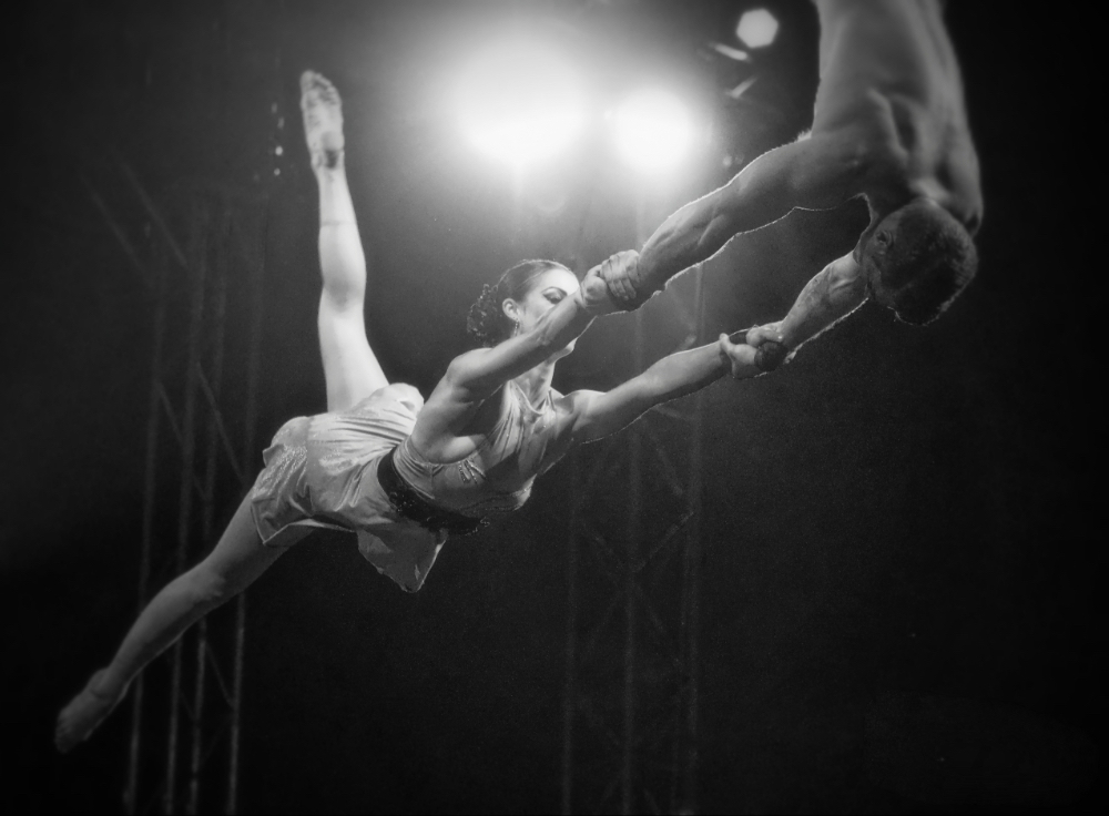 Suspended 30 feet above me, these are the trapeze performers