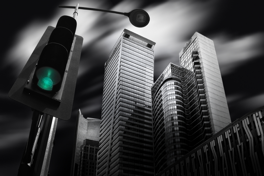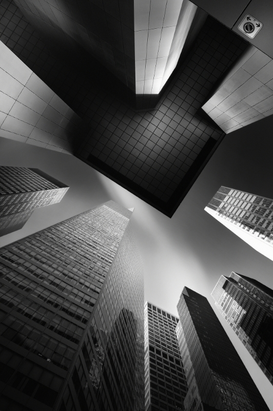 We are going out from an exit covered by roof to the city area or skyscraper, which can become an interesting photographic concept from the exit like the Portal to the distination under the long exposure.