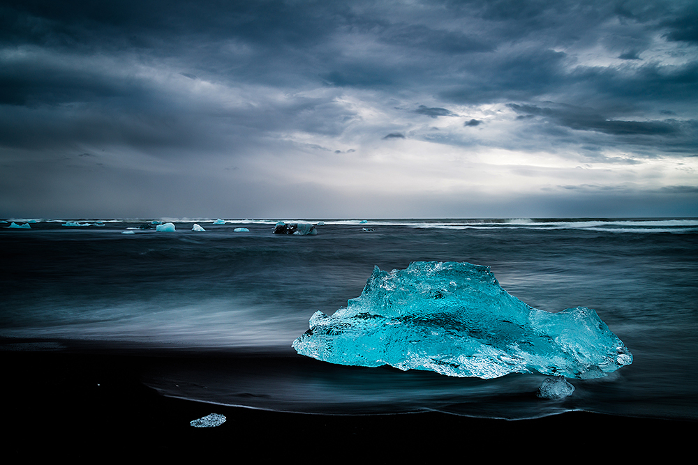 Blocks of blue ice on the shores of the Jokulsarlon lagoon