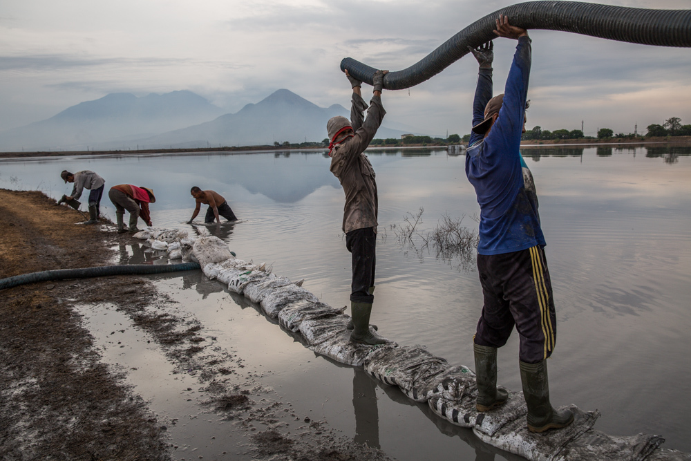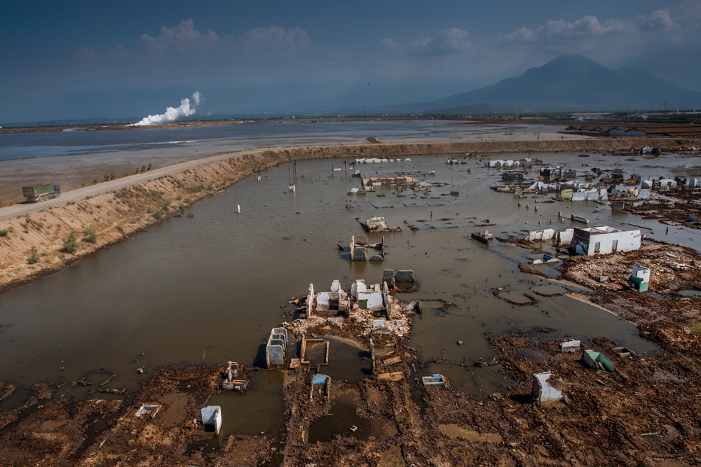 populated district of Sidoarjo, East Java, Indonesia. Steam, water