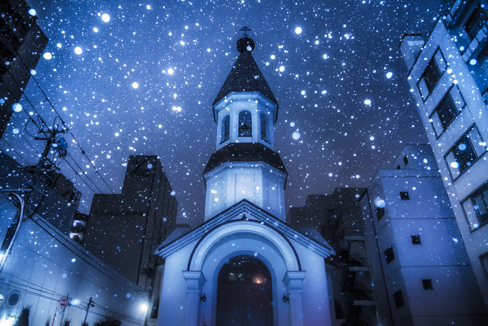 This is orthodox church in Sendai, Japan. On snowy night, I took this