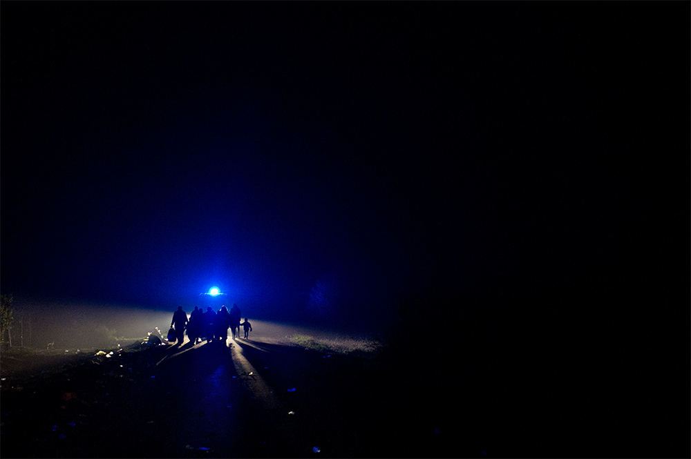 In September 2015 around 5'000 people a day used the unofficial border crossing in Bapska to enter Europe. During the two kilometers by foot from the Serbian border to the registration camp in Croatia, they were escorted by the police.