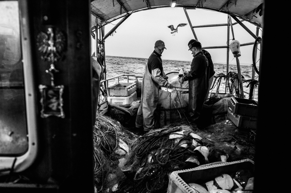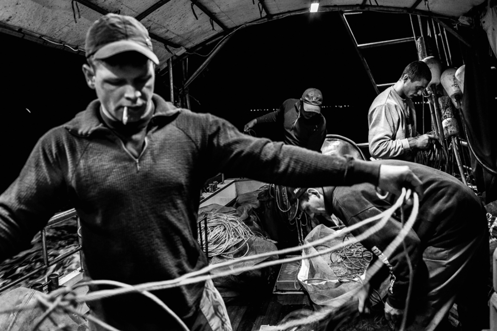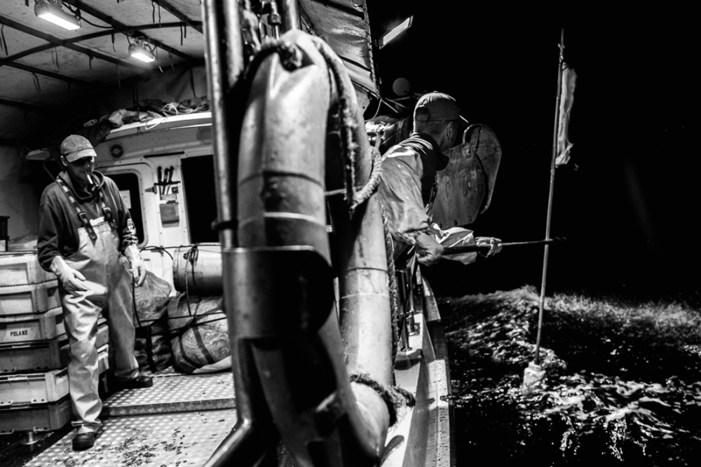 Fishermen during night cruise. Hel. Poland
