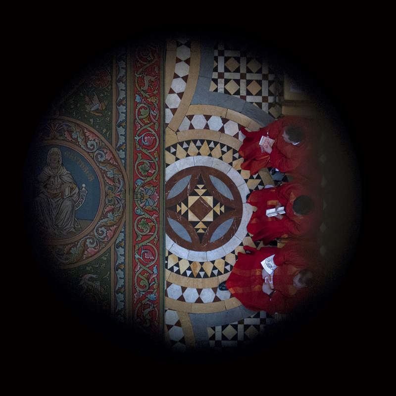 bóvedas de piedra que conforman el techo, fotografiando desde