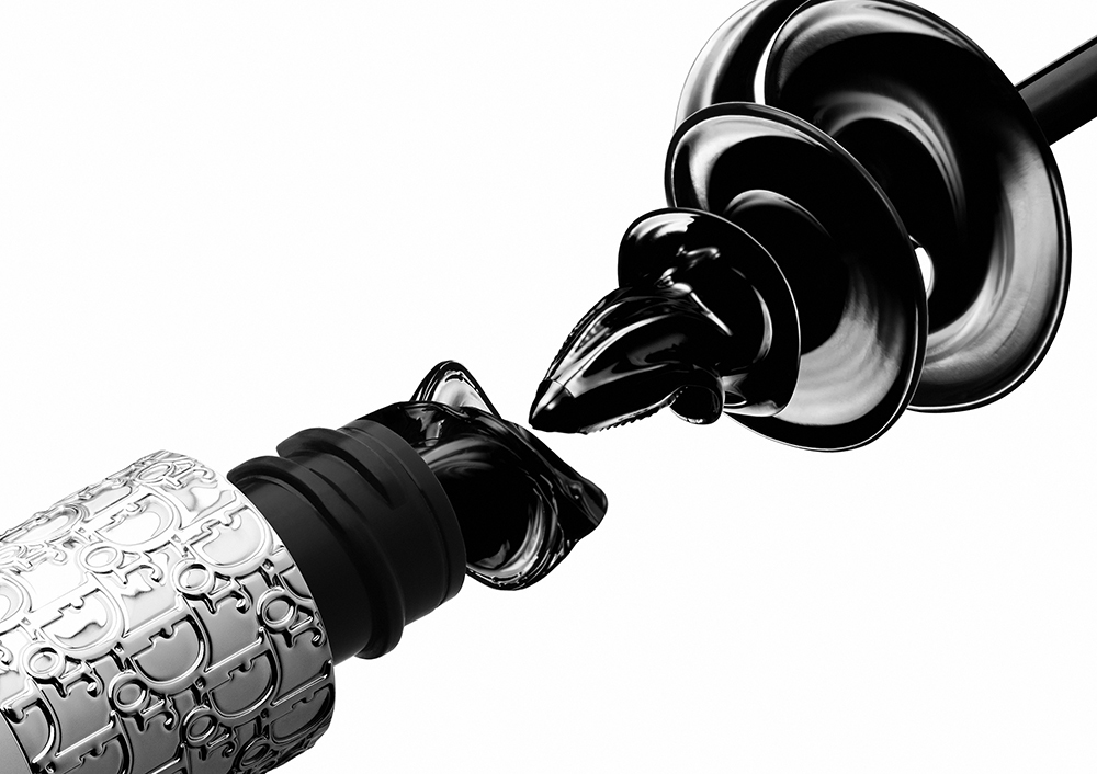 A mascara rotating in ultra high-speed, emitting the liquid in shape of disks.