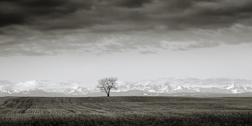 A solo tree in the Alberta Prairie winter highlighted against the