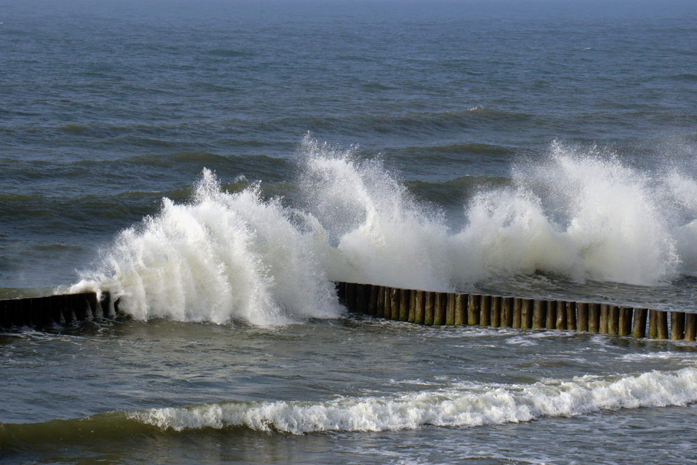 Stormy waves on Baltic crash about spur and picturesque clouds are useful space amazing