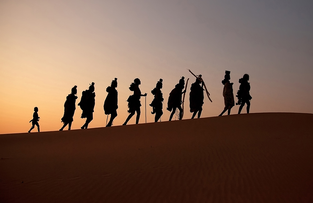 Ordinary day walk front of a majestic sunset on the most ancient desert of the