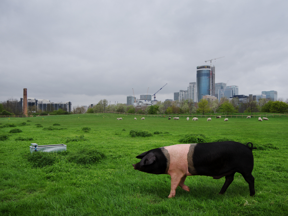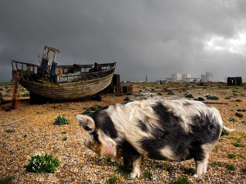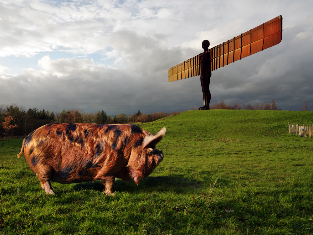 pig, placing them in landscapes that reflect my notion of modern-day Britain, in order to