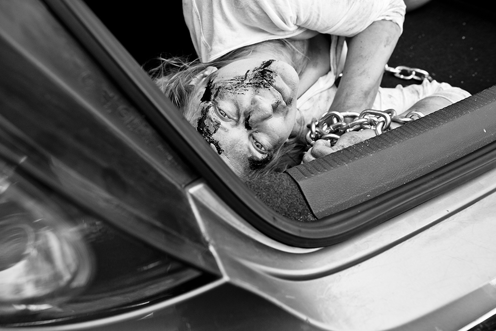speeding car, buried alive, drowned, dragged behind a car etc.