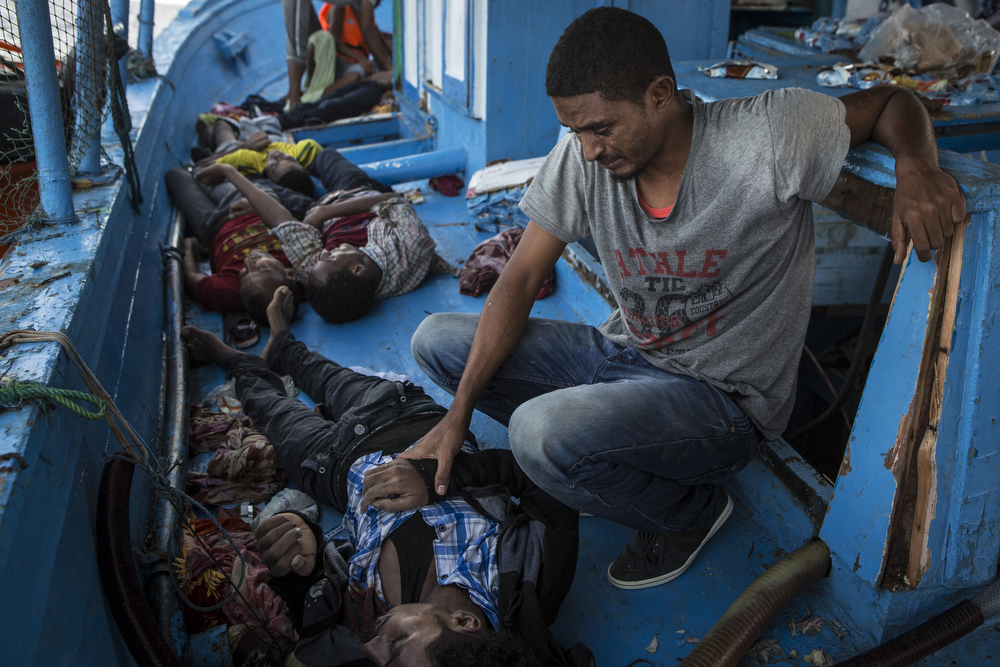 migrants, of all ages and nationalities, trying to cross the Mediterranean in un-seaworthy
