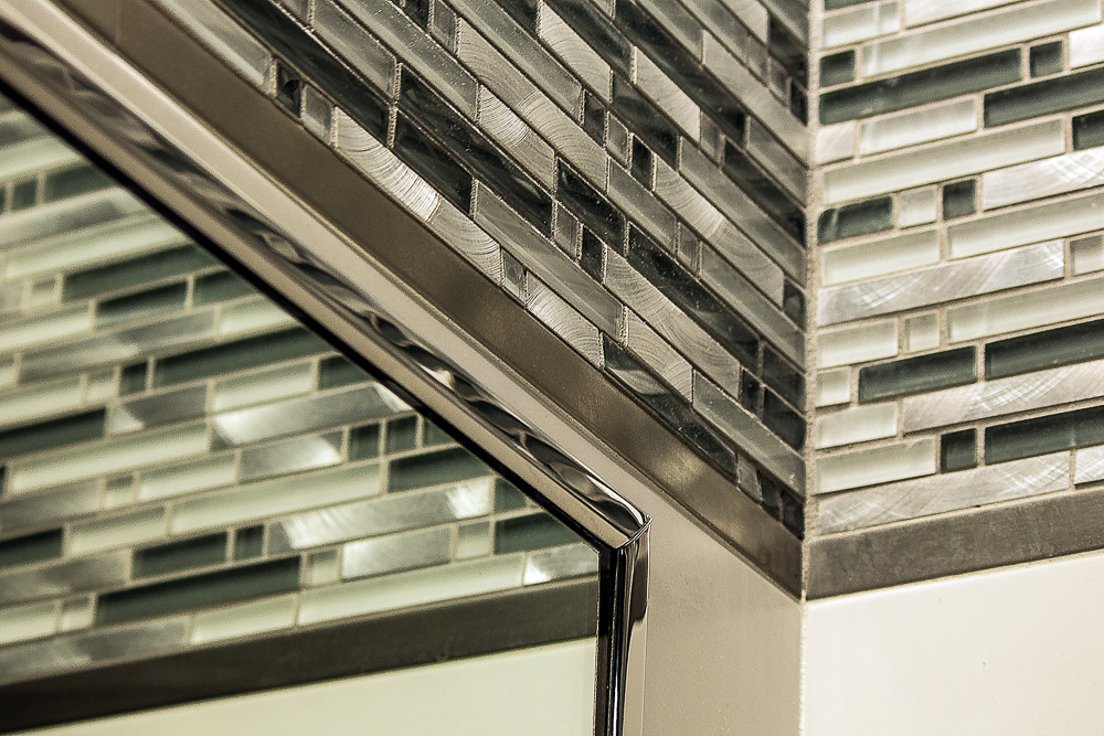 She is inspired by the rhythmic, musical interplay of juxtaposed triangles, diagonals and parallel lines, keenly aware of the interaction between light, reflections, texture and color.