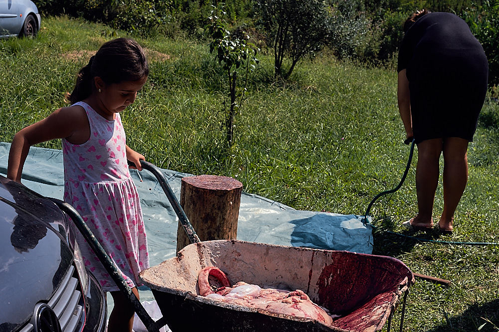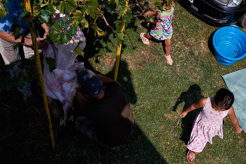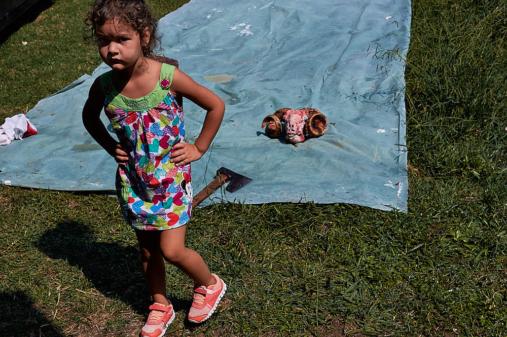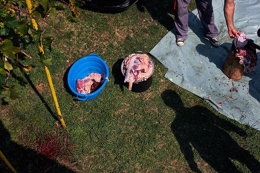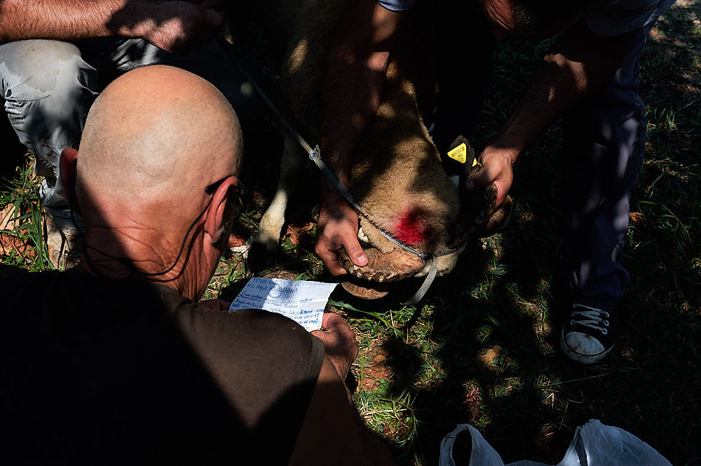 The sacrifice of a lamb during Kurban Bayram in a moderate