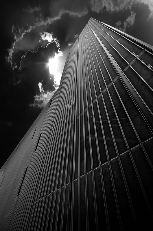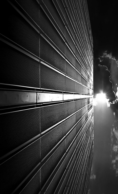 windows of the building are narrow and black. It seems they do not give a chance to those