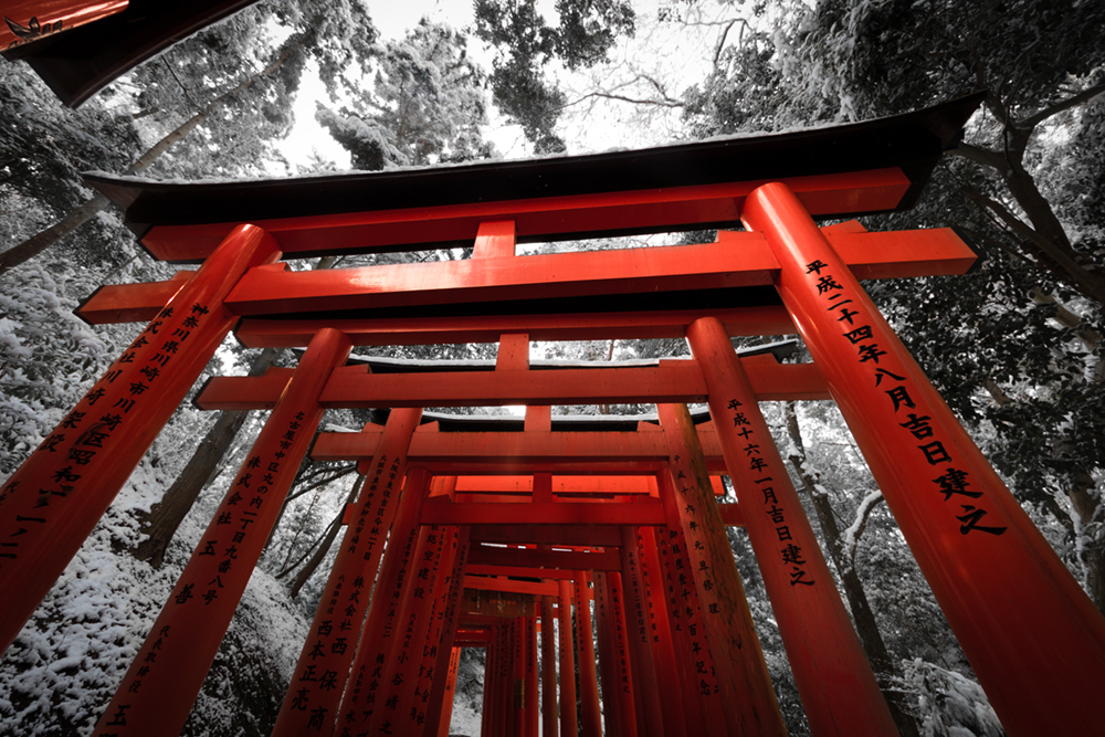 A rare snow day at Fushimi Inari Taisha in Kyoto, Japan. Taken January
