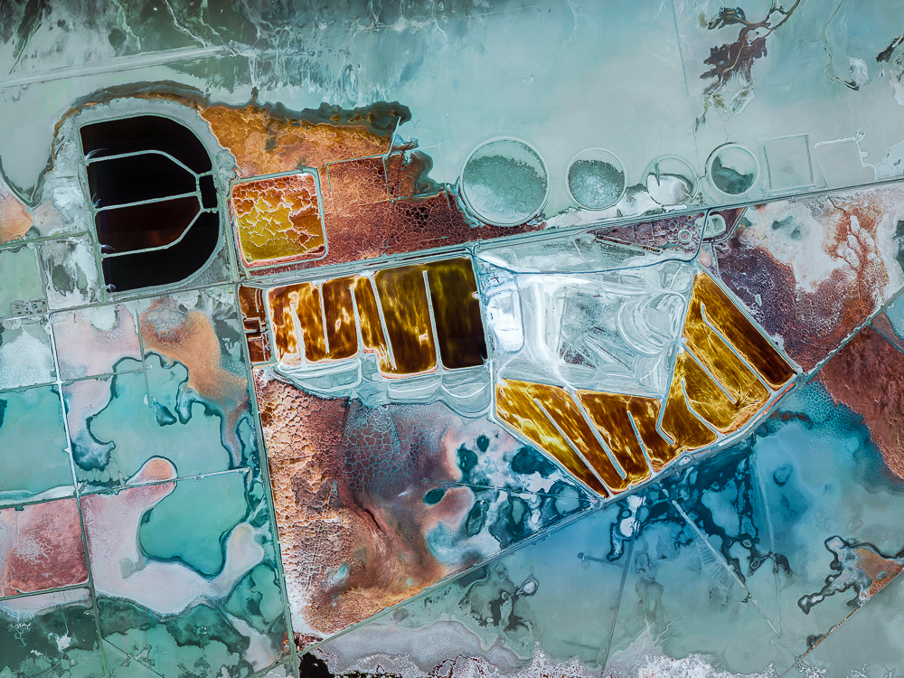 Aerial photograph of chemical ponds found near Las vegas, USA.