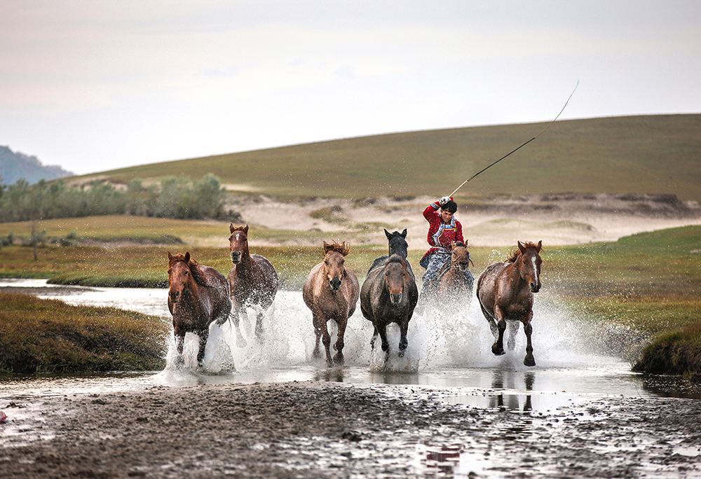 I shoot the galloping horses in the stream at inner Mongolia, China.