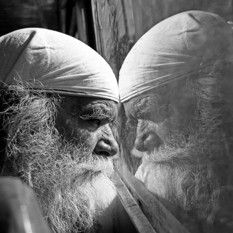 This is a portrait taken in a bus in India somewhere between New