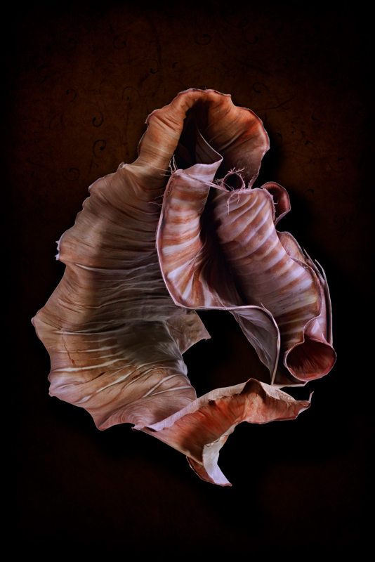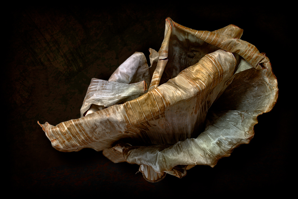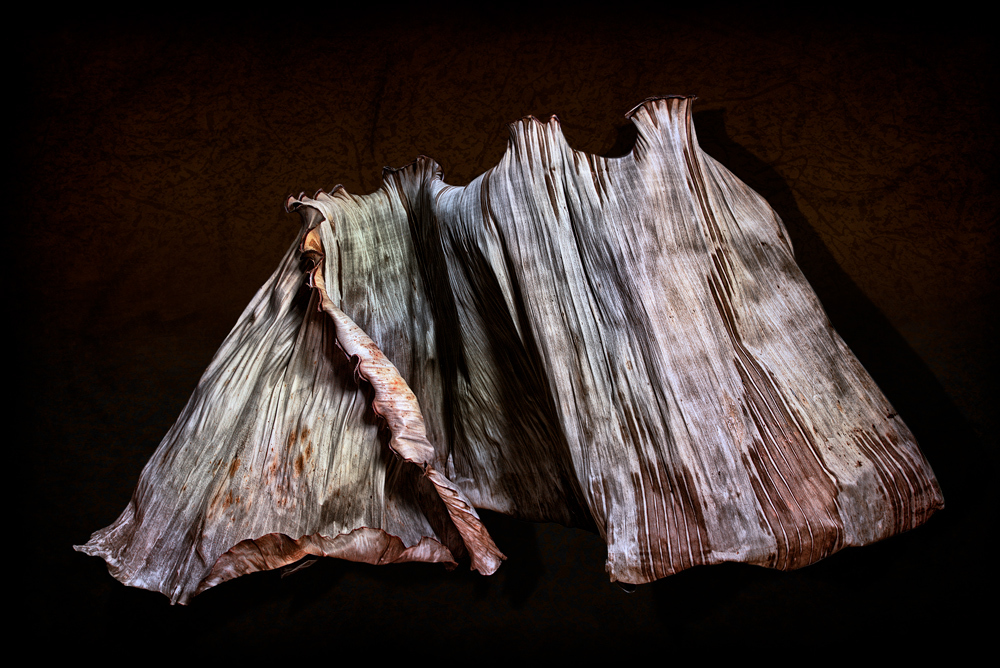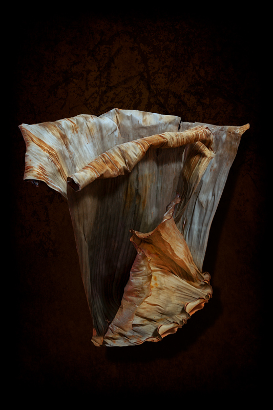 Banana leaves from the "Musa Paradisiaca" are iconic of the Caribbean history and embedded with vernacular references to race, class and national roots and identity. Within the context of Puerto Rico, a country formed in a colonial framework of over 400 years, the construction and affirmation of a national identity is fraught with multiple interpretations and debates. In this series, manipulated banana leaves suggest three dimensional objects, transmuting their traditional symbolism to unravel identity as a social construction in flux.