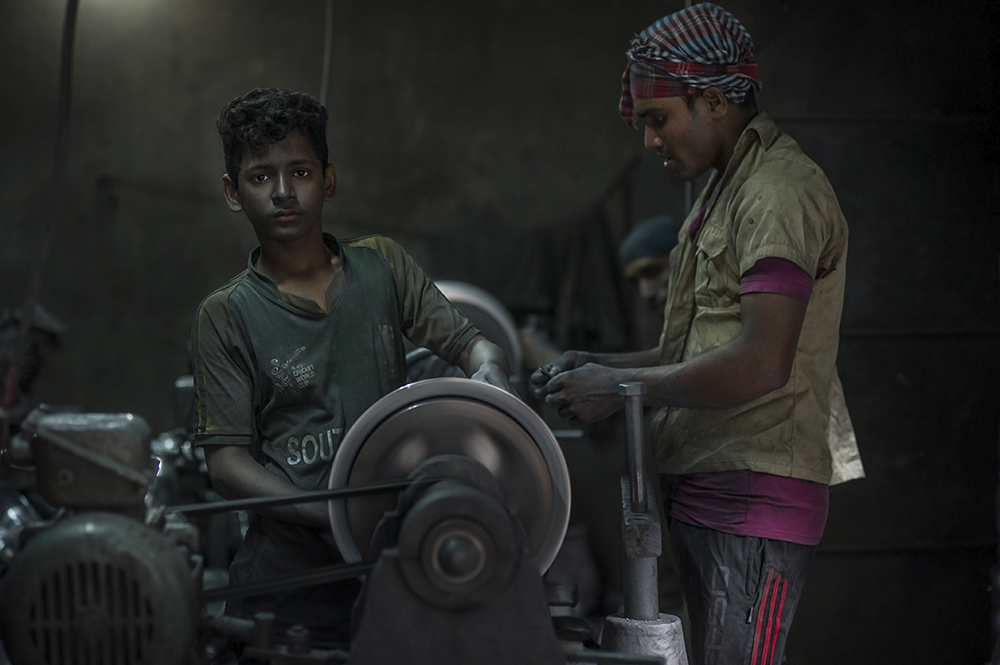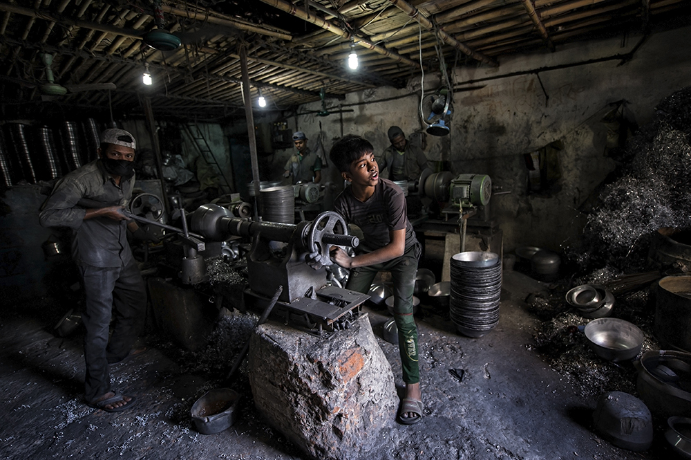 One never stops in the aluminum pot factories in Dhaka, Bangladesh. In less than 40 seconds a flat sheet of aluminum becomes a saucepan. It's a hard and dangerous work as the