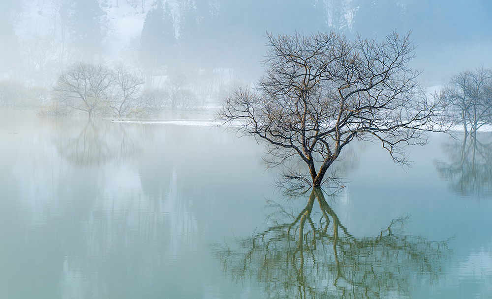 Submerged forest of Shirakawa Lake which appears only for one month of spring that will be