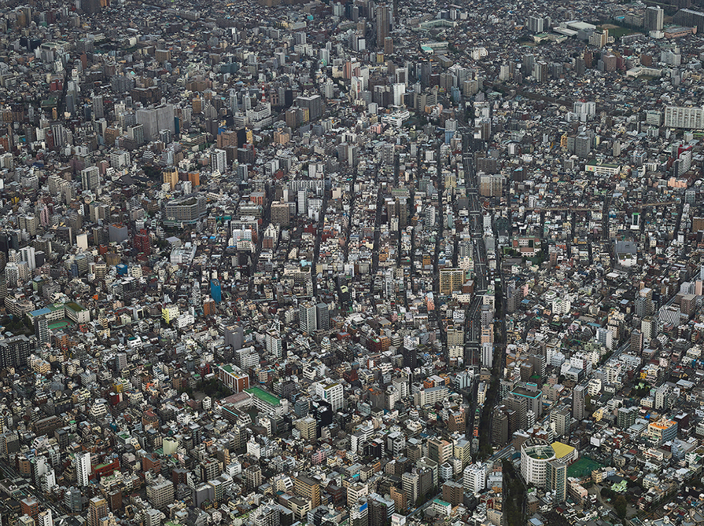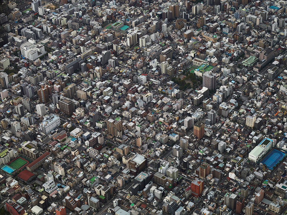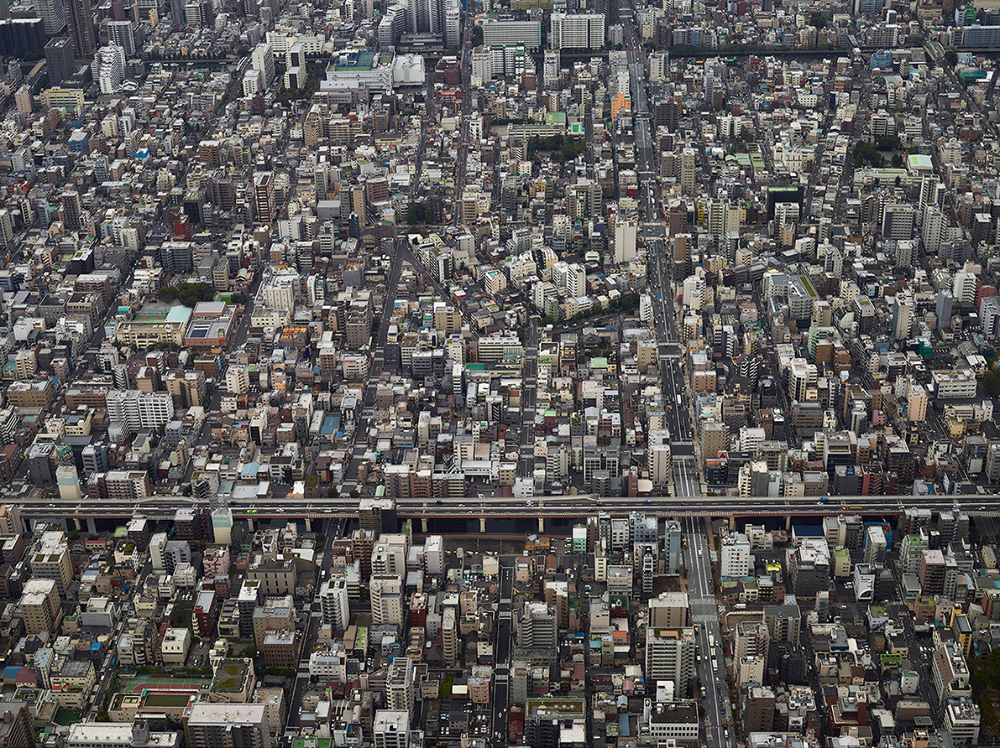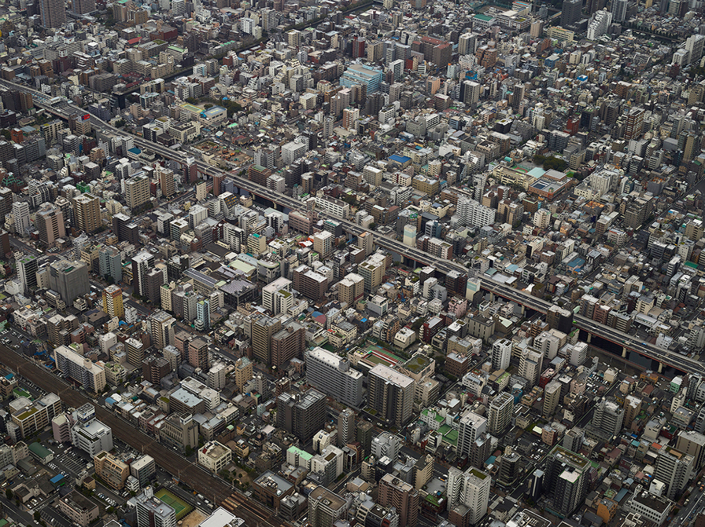 Tokyo is the largest metropolis on the planet and also one of the densest, these large finely detailed aerial landscapes shot at altitude show the vast scale and compact nature of the city.