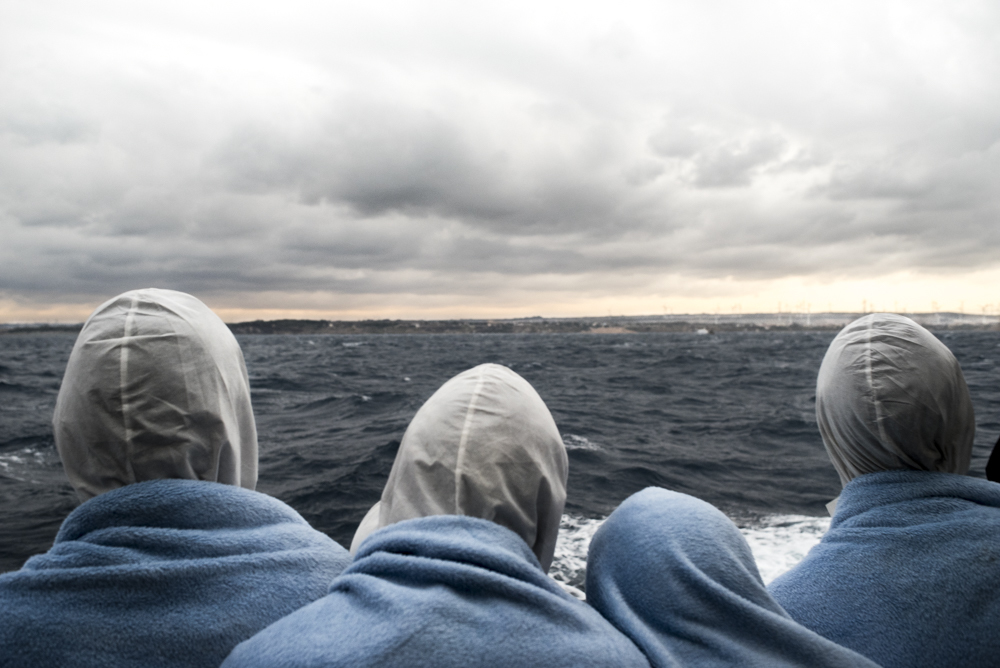 A group of migrants arriving to Europe after being rescued by