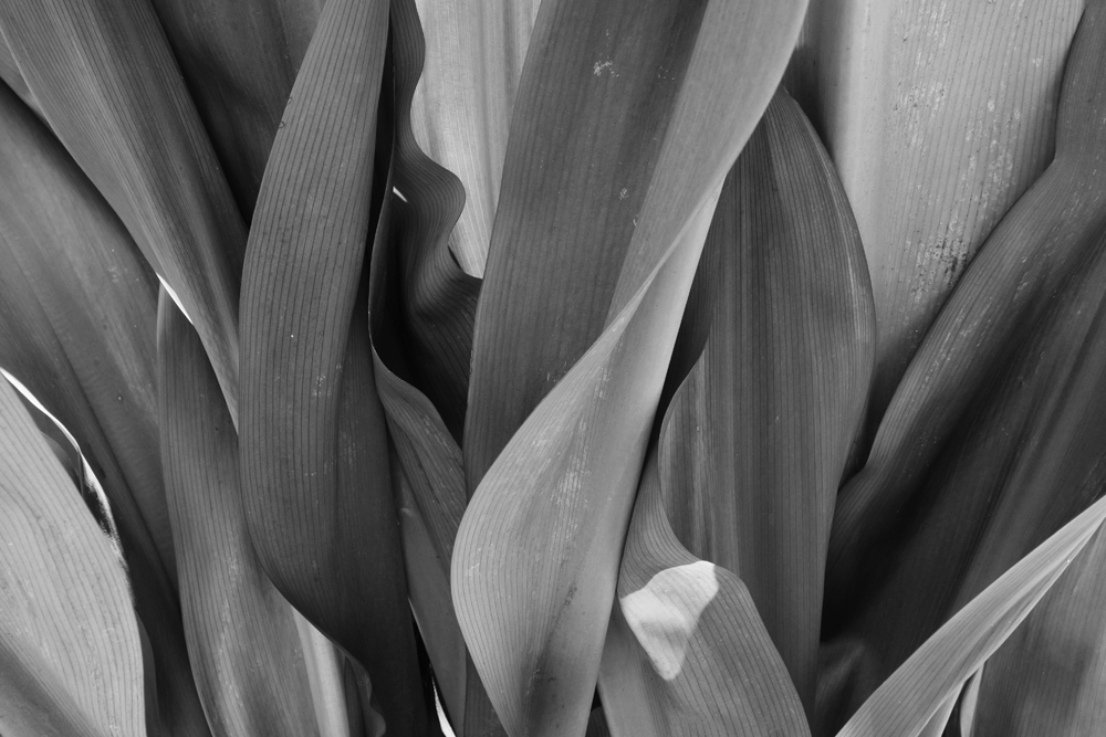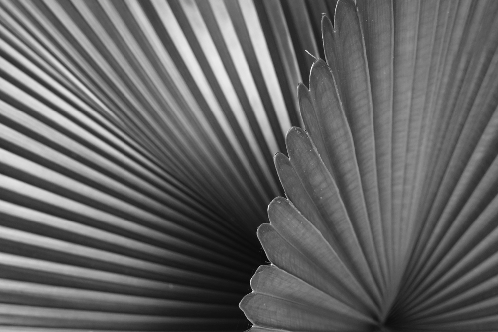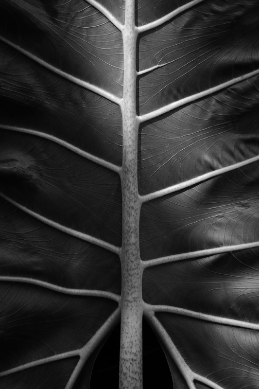 Design composition of abstract forms in black and white with emphasis on natural textures, rhythm, and patterns while utilizing sunlight as light source. Illustrated in five-image design series, all photographs were taken and conceptualized from the details of various Philippine tropical leaves as erected in its natural state - found in different gardens located at different national/historical sites in the country.