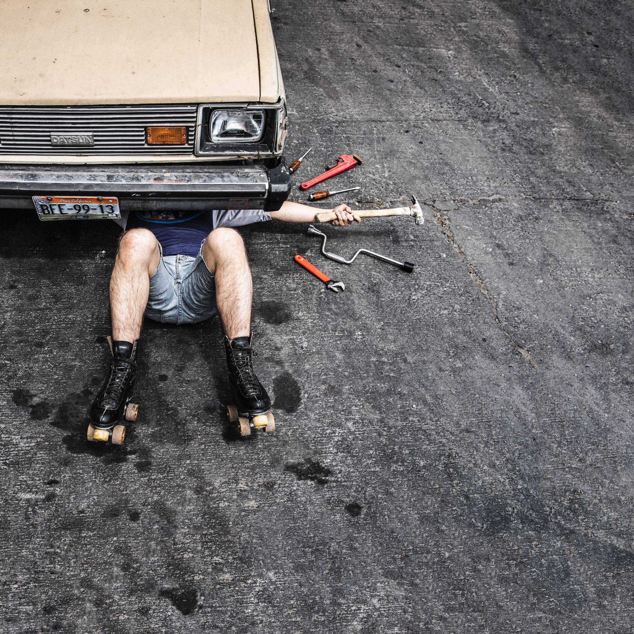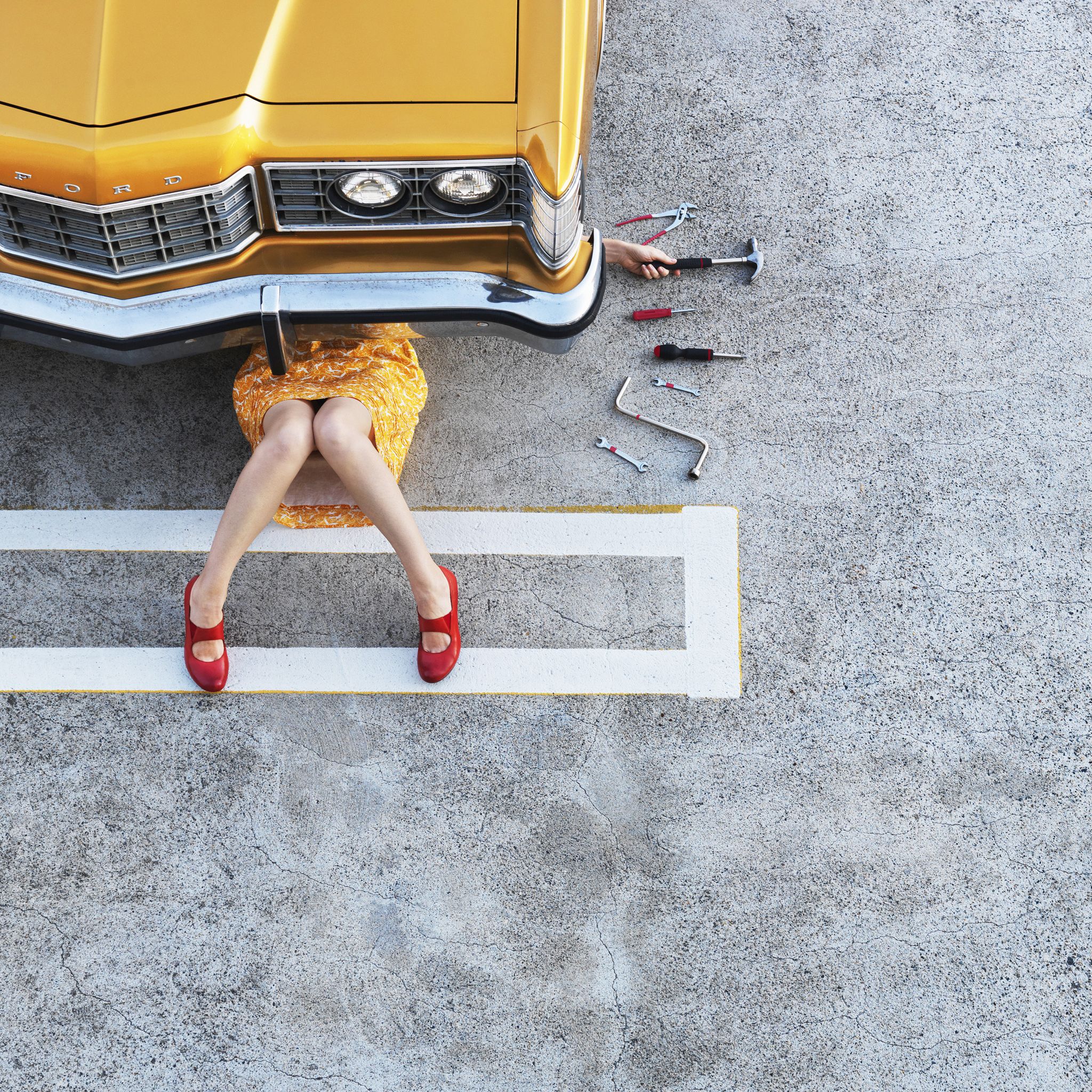 The HAMMER TIME series is an ongoing project started in 2012. The images depict motorists lying under their vehicles holding a hammer. Taking great care in matching models, props and outfits with a variety of cars, the series has grown to a selection of 3 main photographs over the past 6 years.