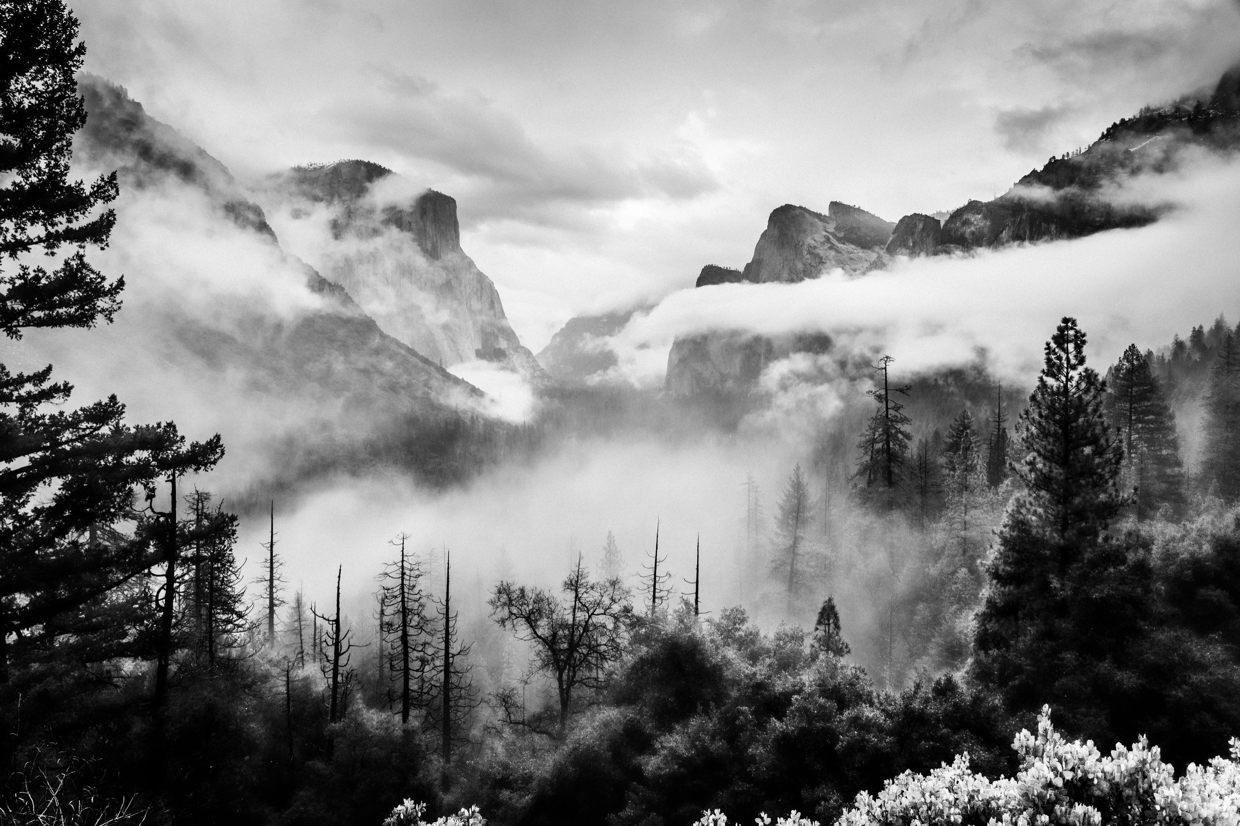 Just before the winter storm hit the ground at Yosemite National Park, the wintry is in full effect during Christmas Eve 2018. You can see the clouds/fog/mist rolling in and out quickly, the rain is falling hard too. I decided to brave the storm and cold for this kind of shot, and I was lucky to get 30 seconds window of this scenery before the huge and thick fog completely blocked the view and also the constant rain storm.