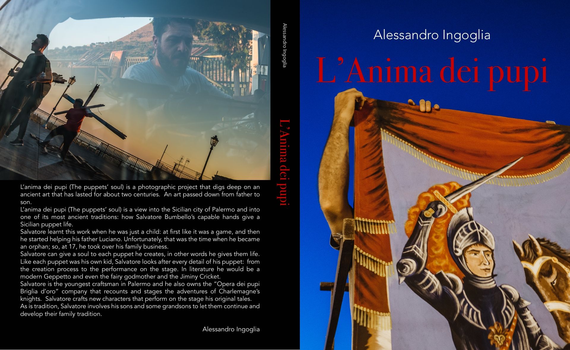 L’anima dei pupi (The puppets’ soul) is a photographic project that digs deep on an ancient art that has lasted for about two centuries. An art passed down from father to son. L’anima dei pupi (The puppets’ soul) is a view into the Sicilian city of Palermo and into one of its most ancient traditions: how Salvatore Bumbello’s capable hands give a Sicilian puppet life. Salvatore learnt this work when he was just a child: at first like it was a game, and then he started helping his father Luciano. Salvatore can give a soul to each puppet he creates, in other words he gives them life.
