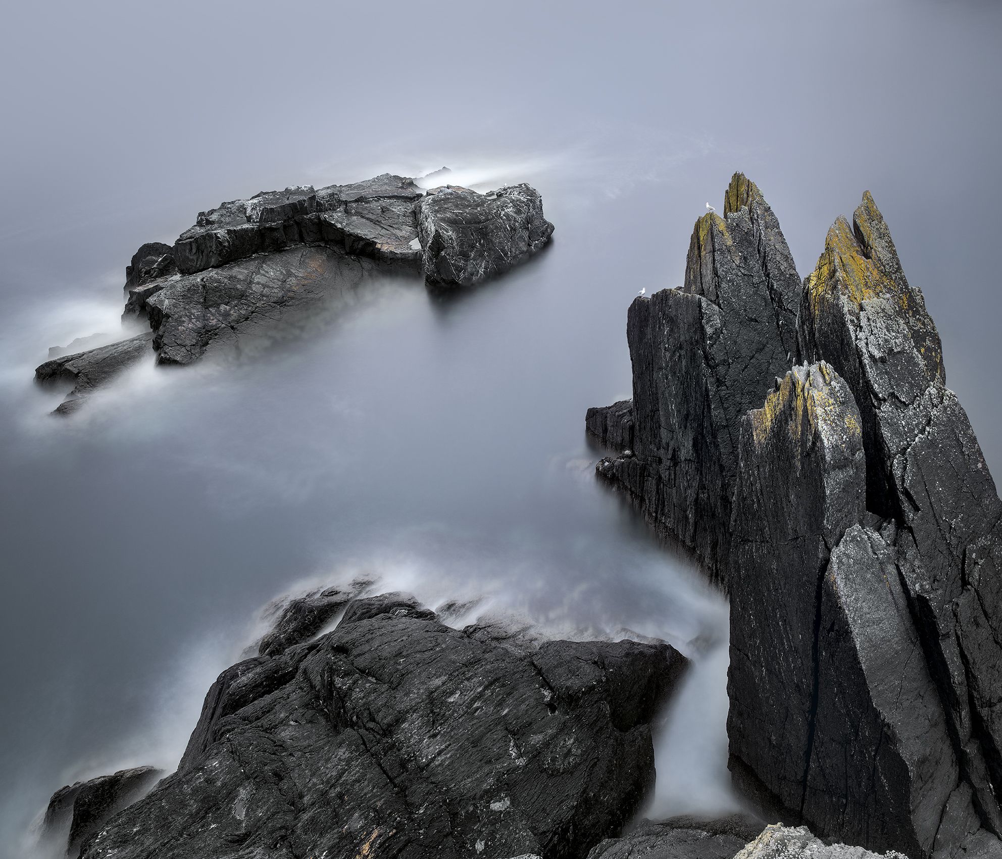 A Landscape study made at a remote and inaccessible head land on the West Coast of Ireland. Earth, Water, Air… are the recurring elements that I work with and on this occasion the elements combined perfectly to help create a photograph that demonstrated the spirituality of nature. The combination of light, tone and movement helping to create a point in time to reflect and be drawn into a world of oneness, contemplation and tranquility.