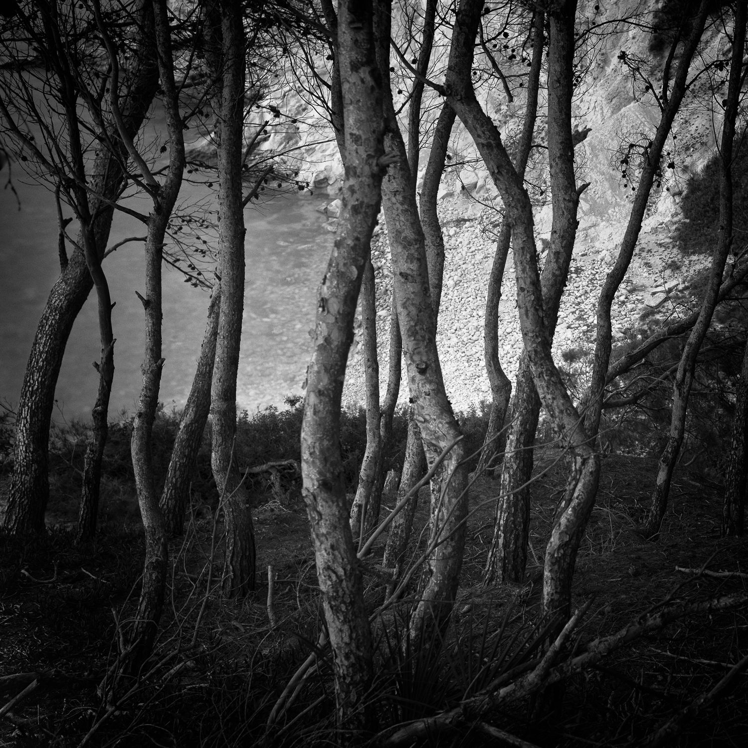 He always was inspired by Ansel Adams, who was with his books in the first stage of photographic live the “teacherâ€. In the new face from 2017 on he studied now also Sudek, Kenna, Giacommeli and began to develop an new way of working. Still using Zonesystem and visualisation as Adams was proclaiming now he started more using different speeds, working at night and showing movements in the photos and he discovered the strength of negative space. Also his tools changed. Did he work in the past a lot with zoom lenses, now he has 4 prime lenses from 18mm to 135mm and uses his feet as zoom following the rule “If a photo is not good, you have not been close enoughâ€.