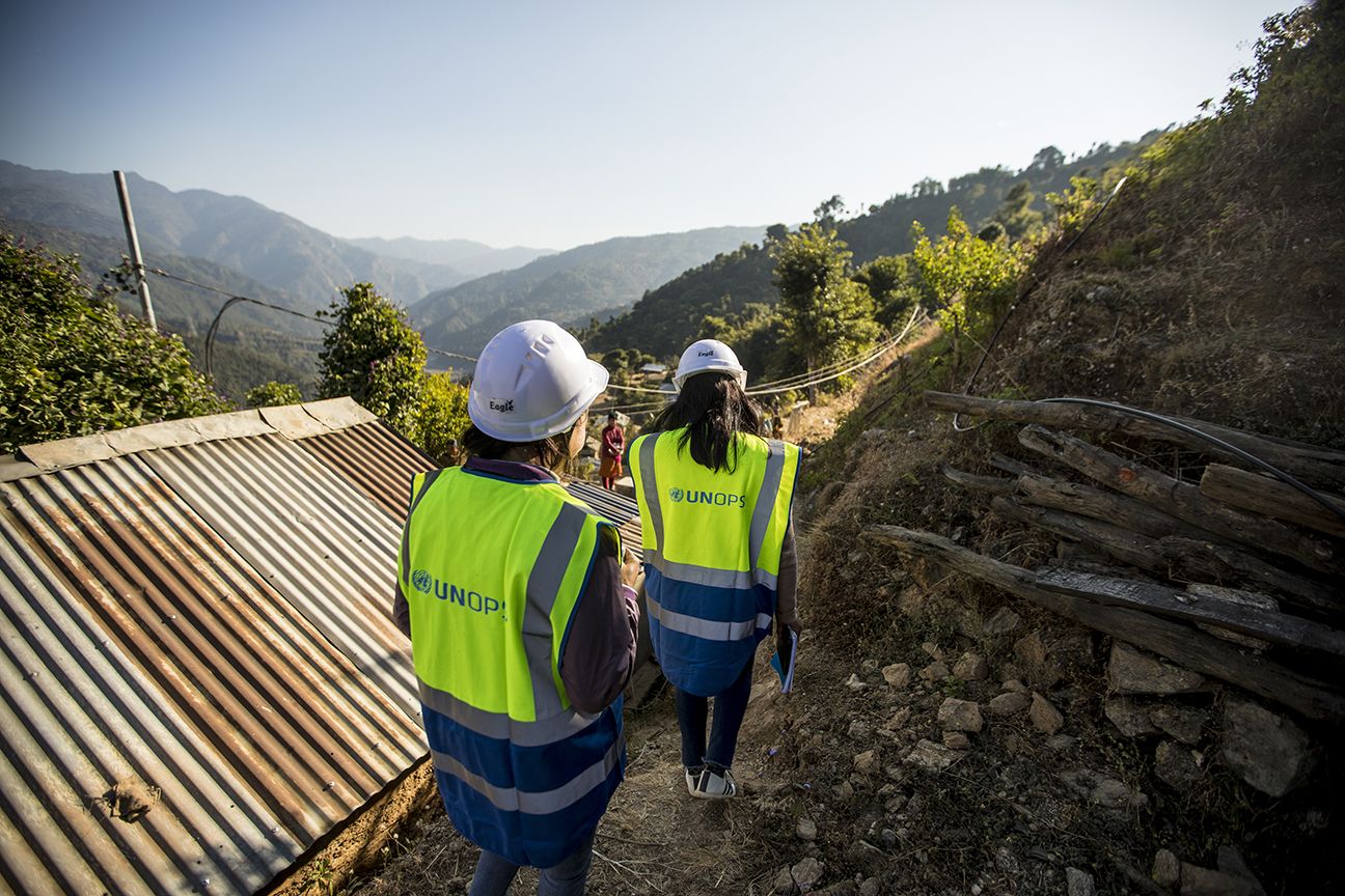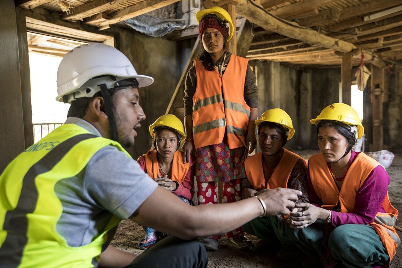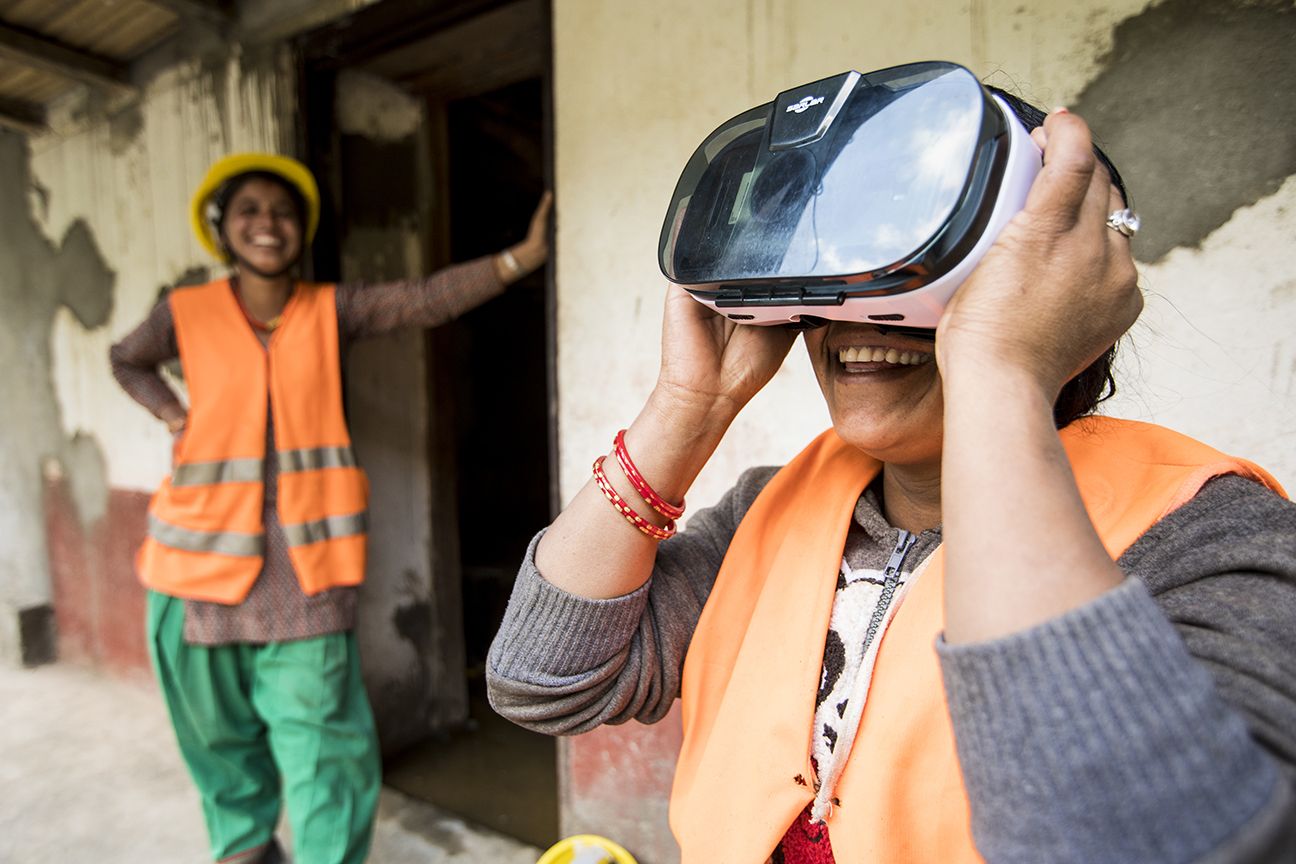 The 2015 earthquake in Nepal caused $10 billion in damage. Hundreds of thousands of homes were destroyed. Disaster response continues 4 years later and UNOPS has started a program to train women masons. The innovative program employs VR technology to teach illiterate clients and a specialized app that uses cell connections to facilitate remote inspections of buildings. UNOPS will use the images in their Annual Report and web site.
