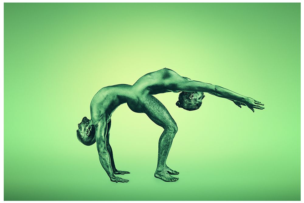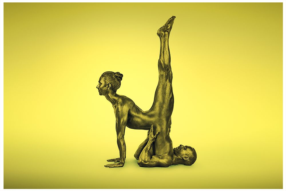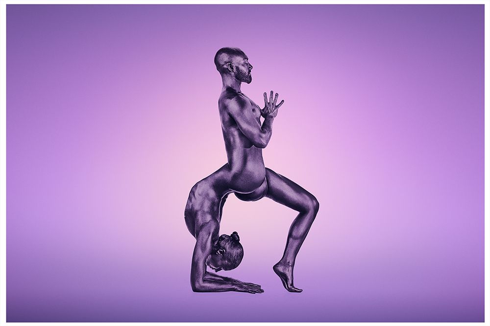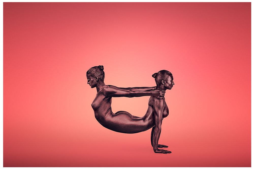 Movement of Colour touches upon karma through hybrid yoga poses that are blended from two independent individuals posing. These ambiguous shapes conjure up sexual connotation linking sex, physical pleasure and yoga together. The project also builds upon the colours of the shakra and emulate this through the bold colour represented in the background.