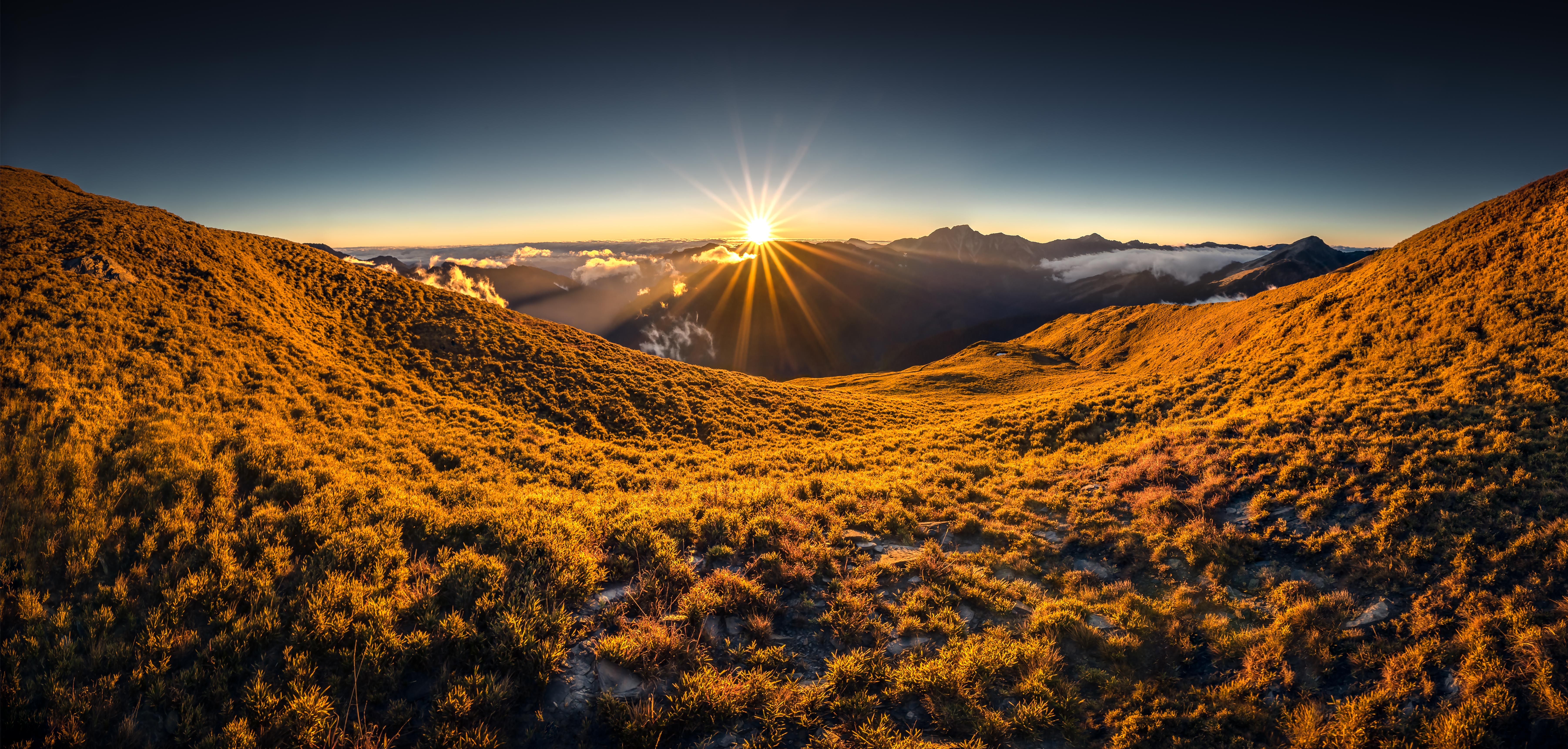 Waiting for the warm and golden sunlight somewhere of mt. Hehuang North Peak, I expected that the sunlight illuminated the sky and colored everything on the ground. It's glamorous moment to witness how the world suddenly turned into such lively world.