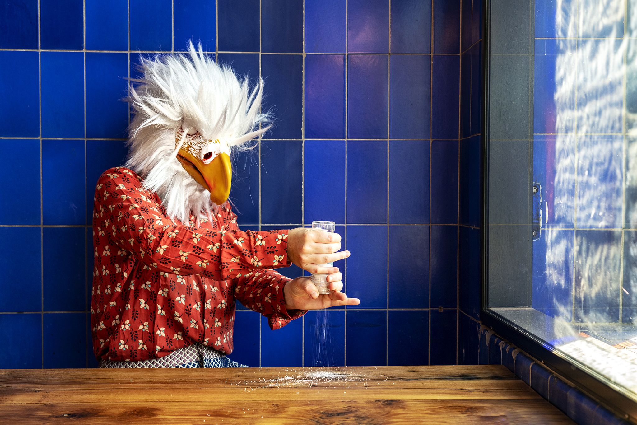 The photographs in the project “A day in life” are scenes that at first sight look realistic. They appear to be quite ordinary. However, a surrealistic twist is added by using animal masks. The unusual somewhat abnormal content is reinforced by details or actions depicted in the photographs.