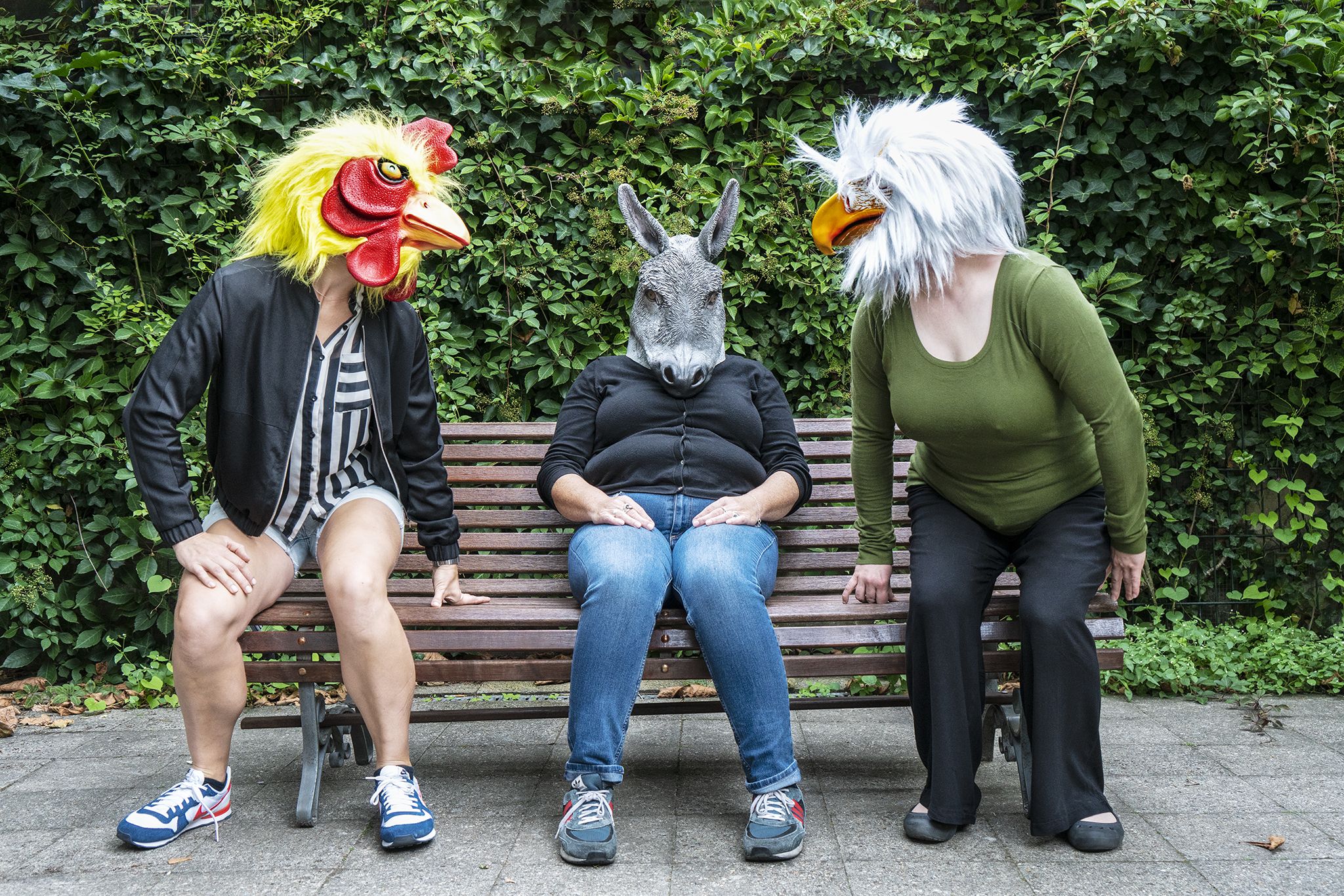 “A day in life” resulted after contemplating human behaviour, how persons act and react. Whether human behaviour is based on their own believes and values or on what they think is expected from them. The animal masks symbolise the very often hidden secret thoughts of people.