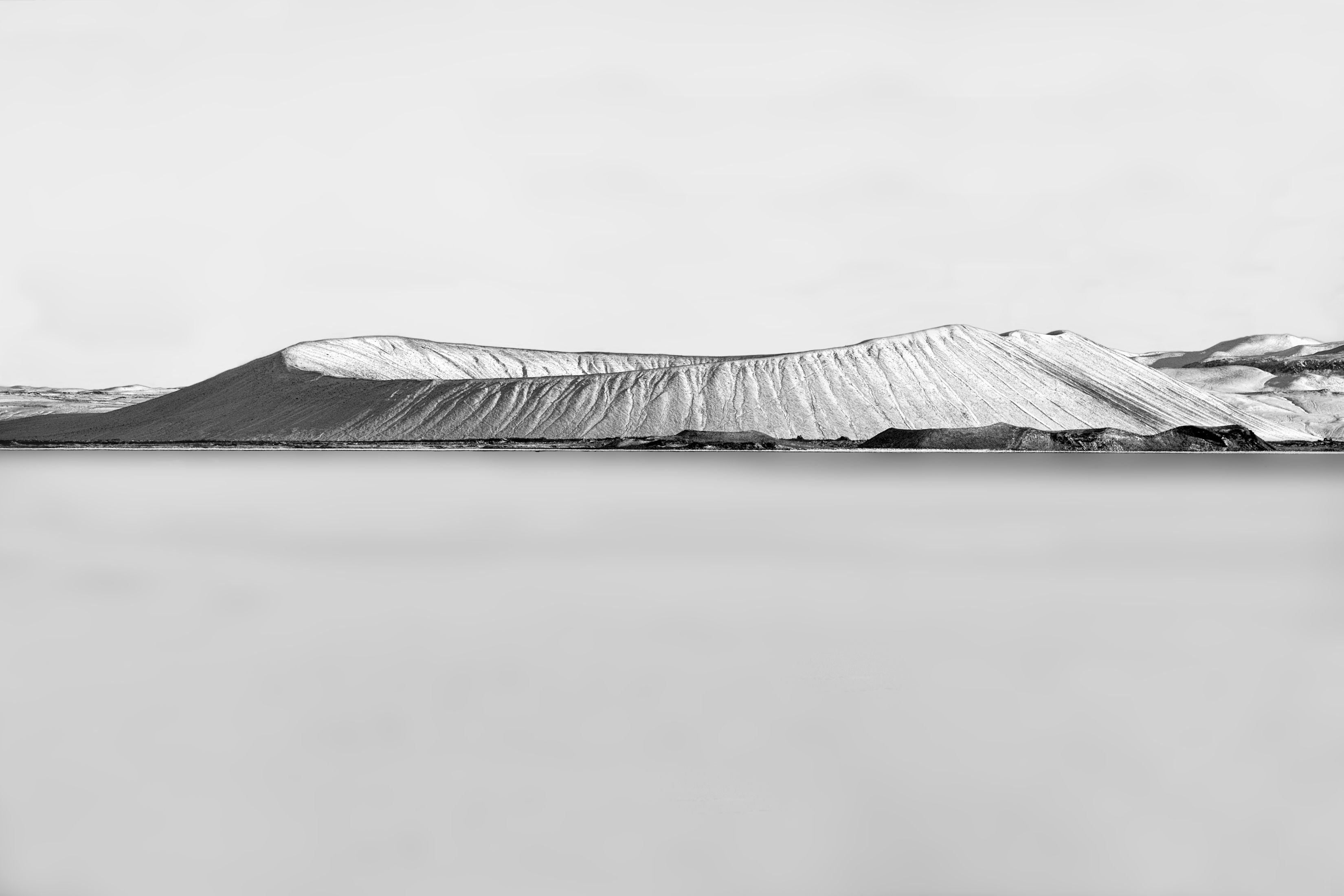 The snowy volcano crater just like a snow hat. This photo clarifies all the background just wants to show its simple shape and its outstanding. This scene shows In winter time only. Taken in Iceland.