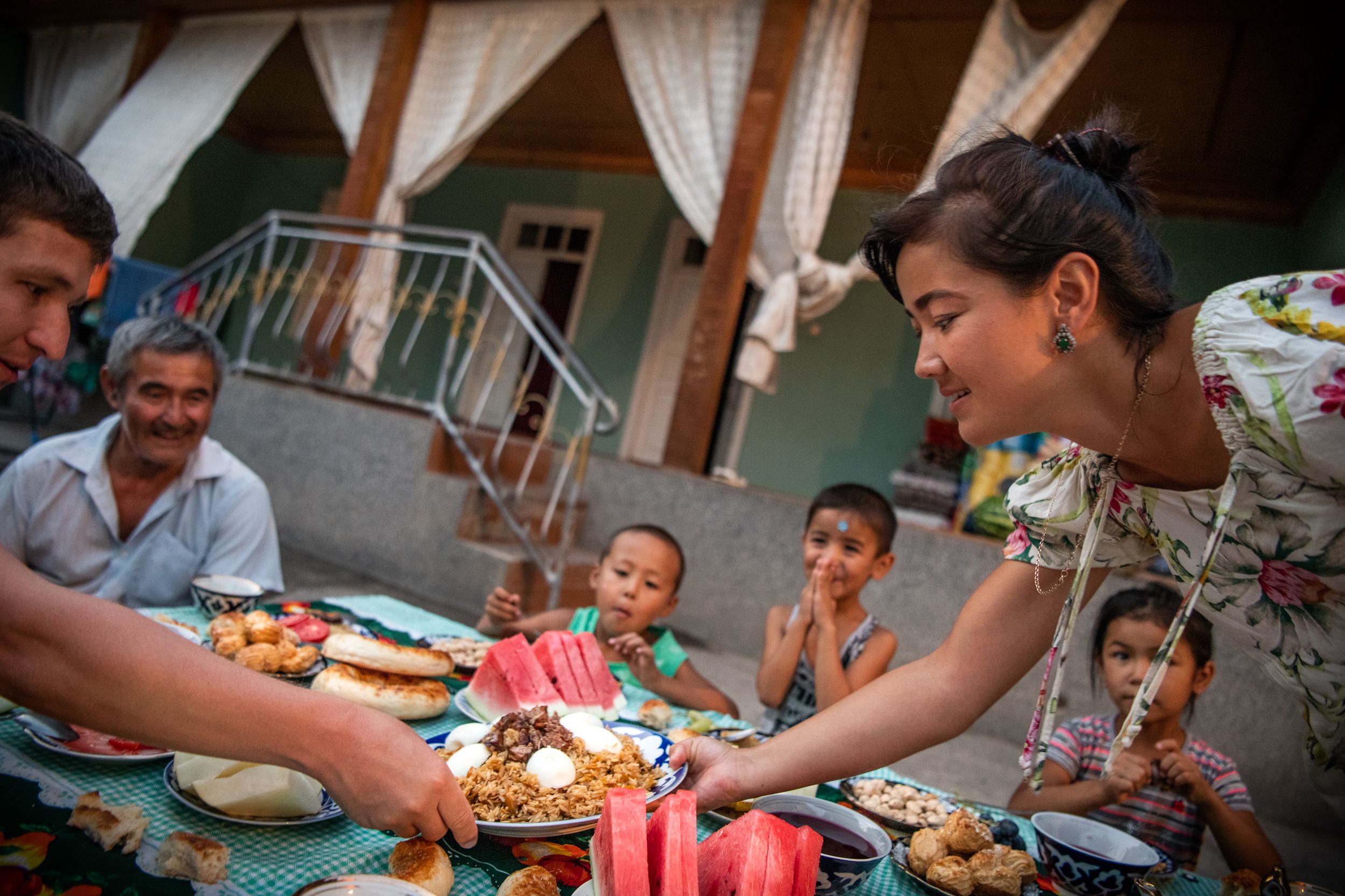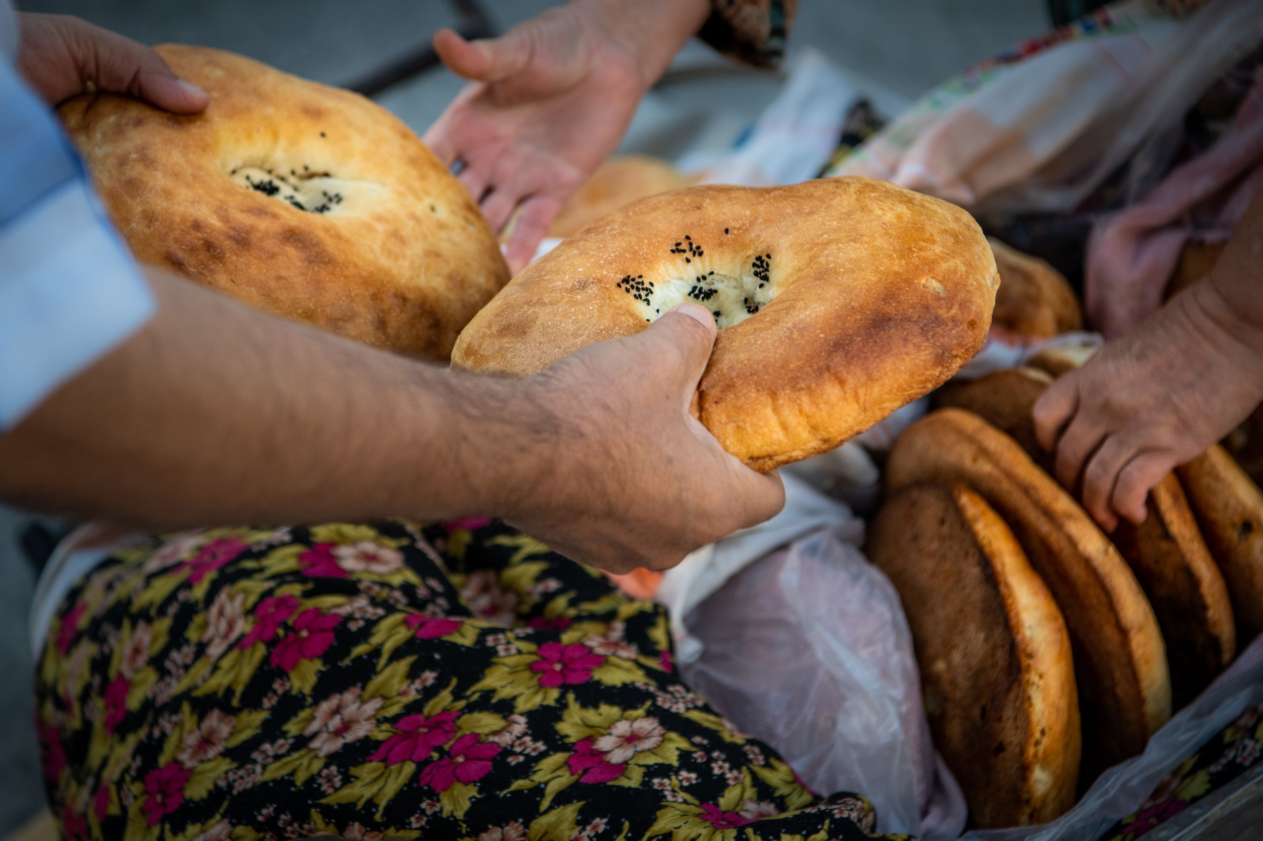 The Uzbek Festival of Sacrifice, or Eid al-Adha, is very special for the Uzbek people. It is the holiest Islamic holiday, where payers, family and friends are the center. The morning prayers often together with others, men with men and women with women, take place in a mosque or other location, which can be a room next to the graveyard as in Fergana valley. During the day, and in commemoration, bread and other foods are purchased and prepared for the evening. The evening meal is shared with family, friends, and neighbors and stories are told and songs being performed by the children.