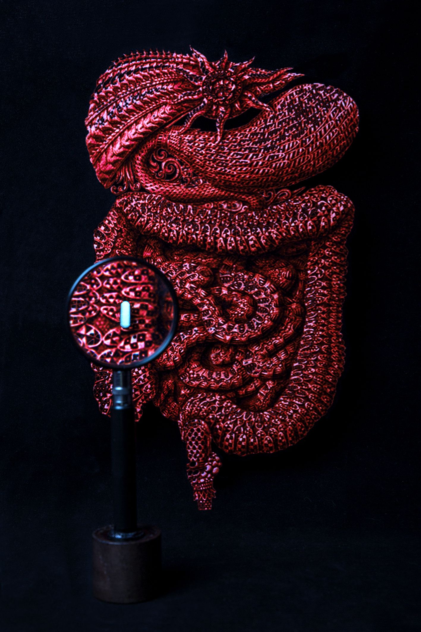 With this photo series, I want to show the technology that embeds itself in us. The way in which the new technologies are shown is based on an anatomy cabinet, what I call a wonder room. The anatomical cabinet of Frederik Ruysch (1638-1731) is a great source of inspiration for me. The preparations of Ruysch are located at the interface of art and science.